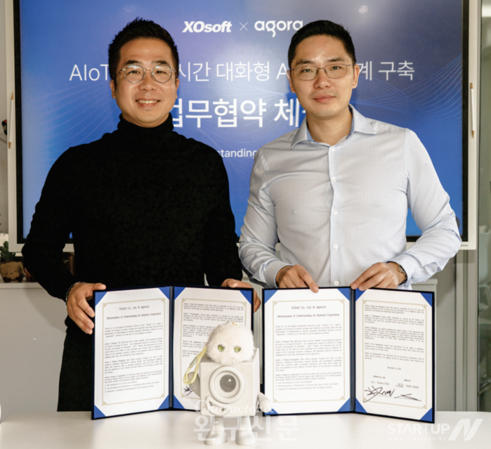 【캐릭터 완구신문】이상곤 기자 = AIoT(인공지능 사물인터넷) 및 AR(증강현실) 전문 기업 엑스오소프트(XOsoft, 대표 박세원)가 글로벌 실시간 통신(RTC) 플랫폼 선두 주자인 나스닥 상장사 아고라(Agora, NASDAQ: API)와 전략적 업무협약(MOU)을 체결하고, 차세대 AIoT 기반 실시간 대화형 서비스 시장 개척에 본격적으로 나선다. 국내 혁신 기술 기업과 글로벌 빅테크 기업의 만남이라는 점에서 업계의 이목이 쏠리고 있다.